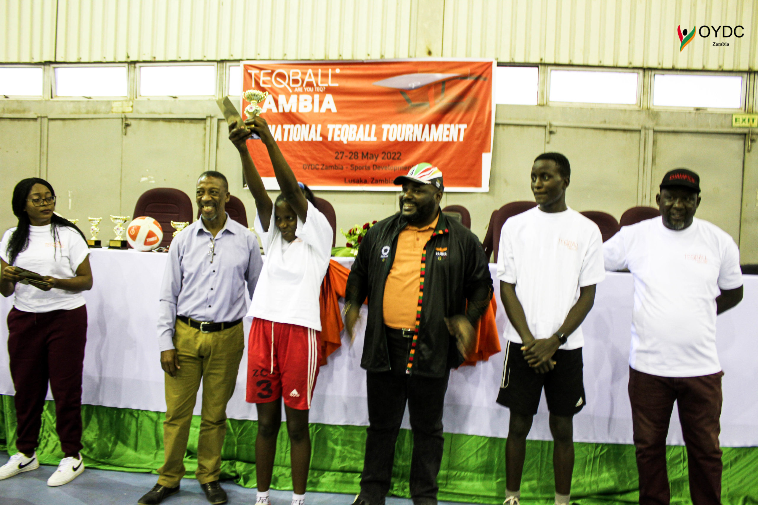 During the medal presentation, one of the youngest players of the tournament was gifted with shoes by Teqball Federation president Dickson Jere and OYDC Zambia Chief Executive Officer Dr Fredrick Chitangala.